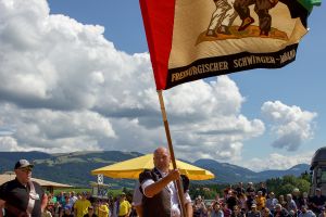 250803 remise de la Bannière à la 100ÈME FÊTE CANTONALE FRIBOURGEOISE DE LUTTE SUISSE à le LE CRÊT-PRÈS-SEMSALES, 03.08.2025 "Bild sports-suisse.ch"