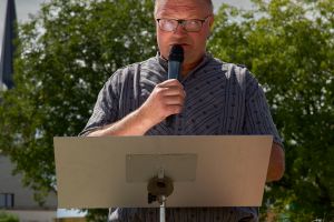 250803 Le Président du CO Marc Fahrni à la Remise de la Bannière à la 100ÈME FÊTE CANTONALE FRIBOURGEOISE DE LUTTE SUISSE à le LE CRÊT-PRÈS-SEMSALES, 03.08.2025 "Bild sports-suisse.ch"