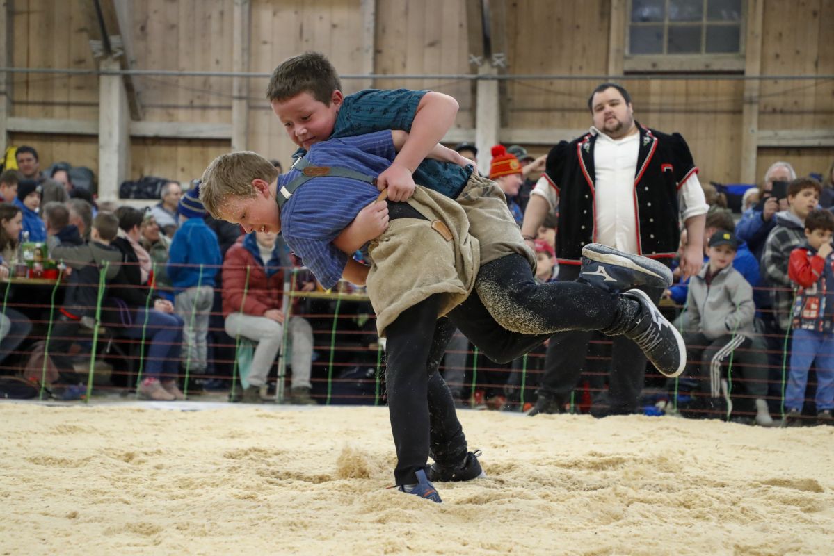 In der jüngsten Kategorie trafen Zaugg Marco (Schangnau) und Burger Adrian (Tavannes) aufeinander. Zaugg Marco (Schangnau) gewinnt mit dem Inneren Haken und Nachgehen am Boden bereits nach 1 Minute 08 Sekunden.