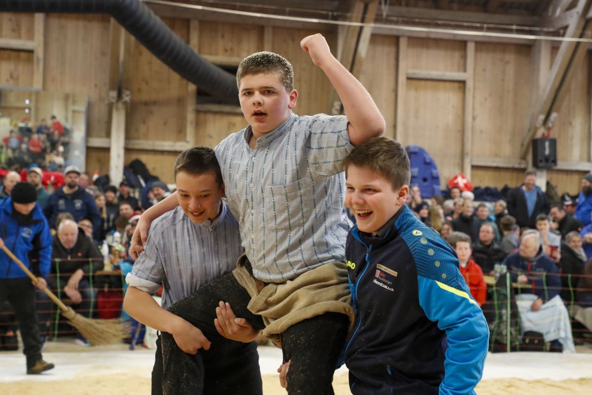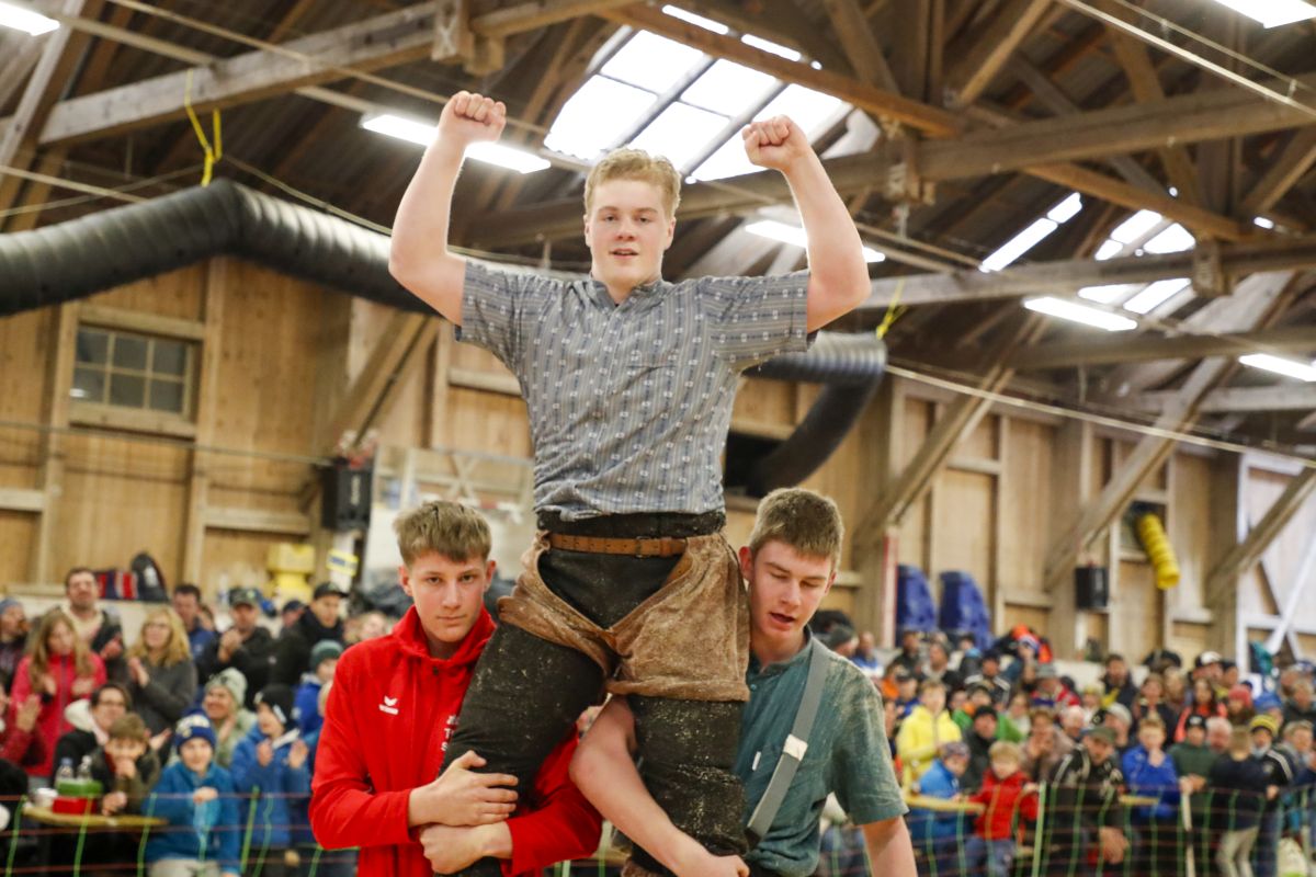 Der Schlussgang der ältesten Kategorie bestritten Scheuner Adrian (Oberlangenegg) und Karlen Fabio (Botigen). Scheuner Adrian (Oberlangenegg) bezwingt Karlen Fabio (Boltigen) mit Kurz nach 3 Minuten 33 Sekunden.