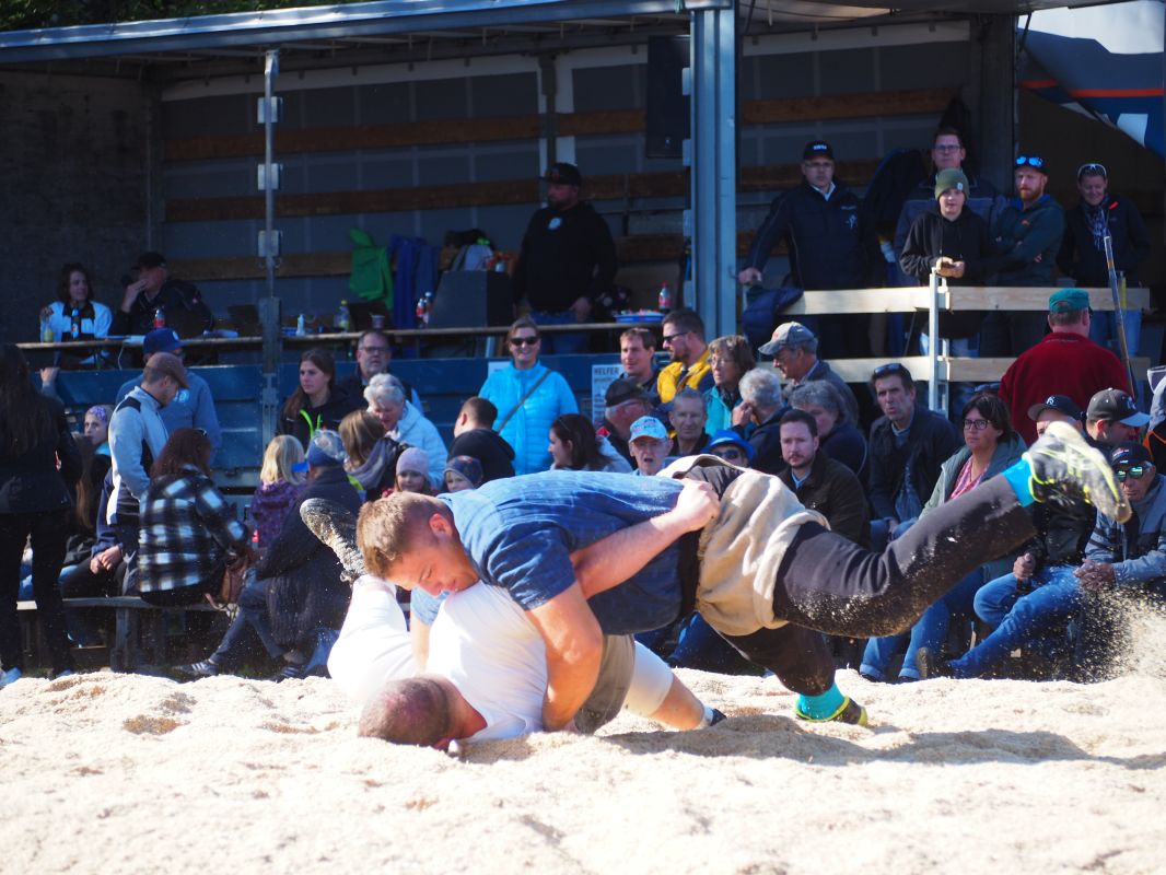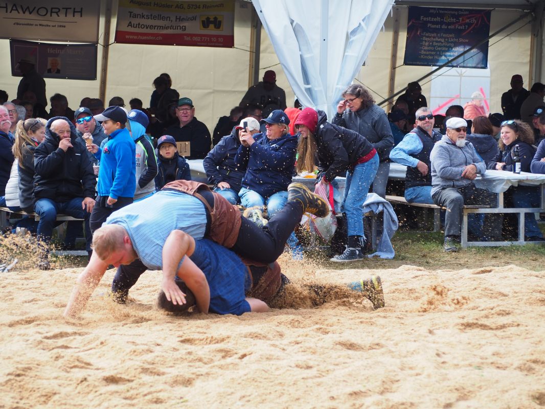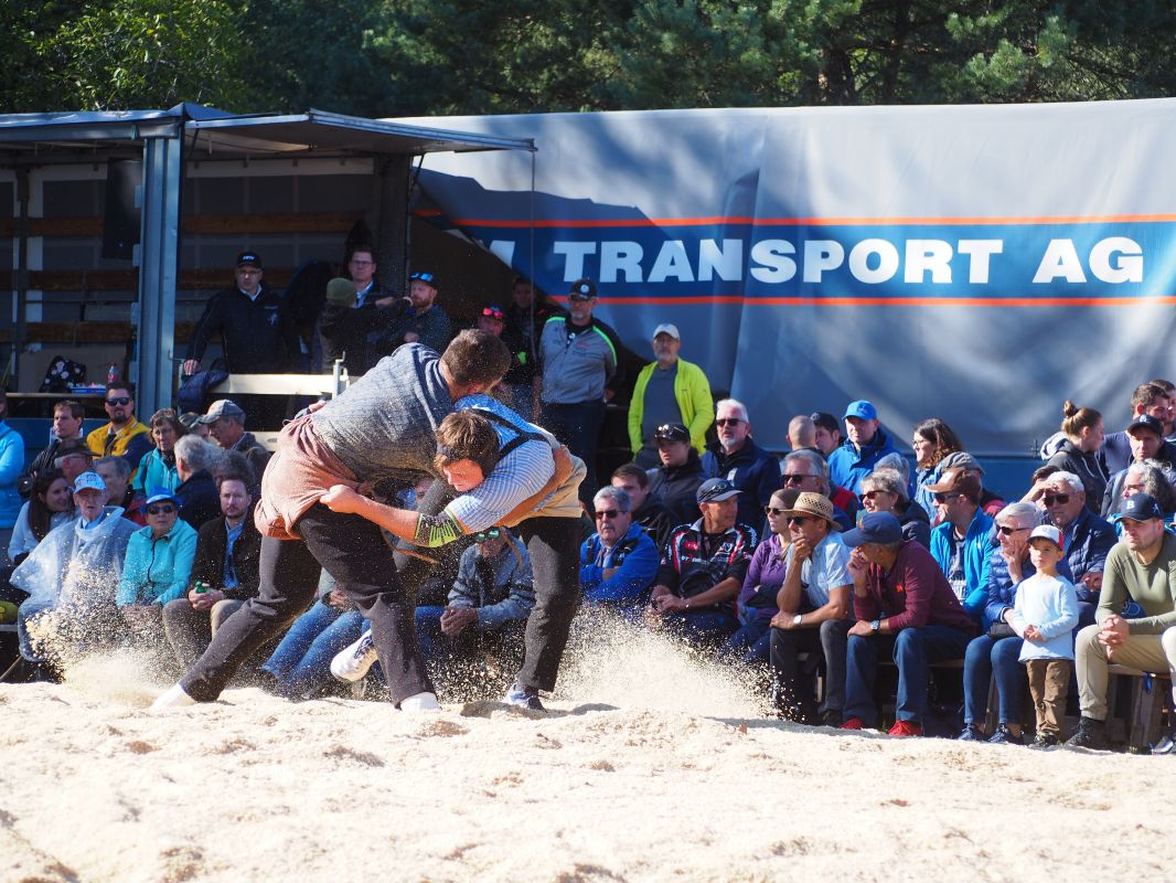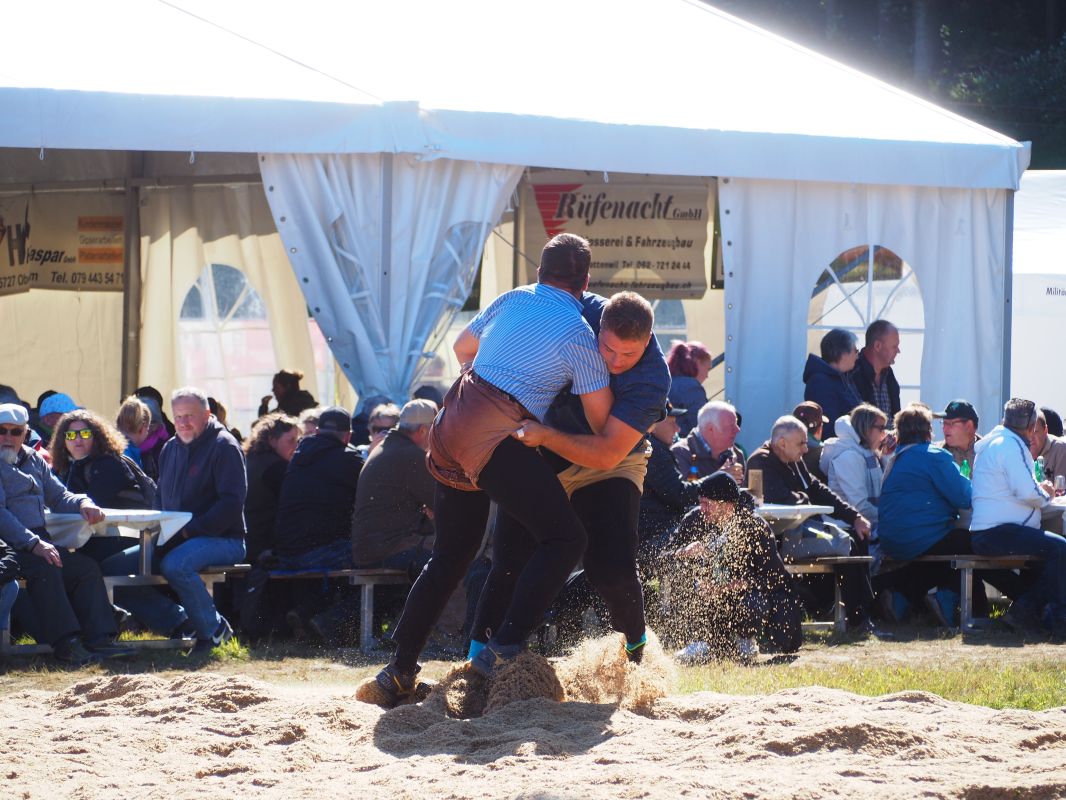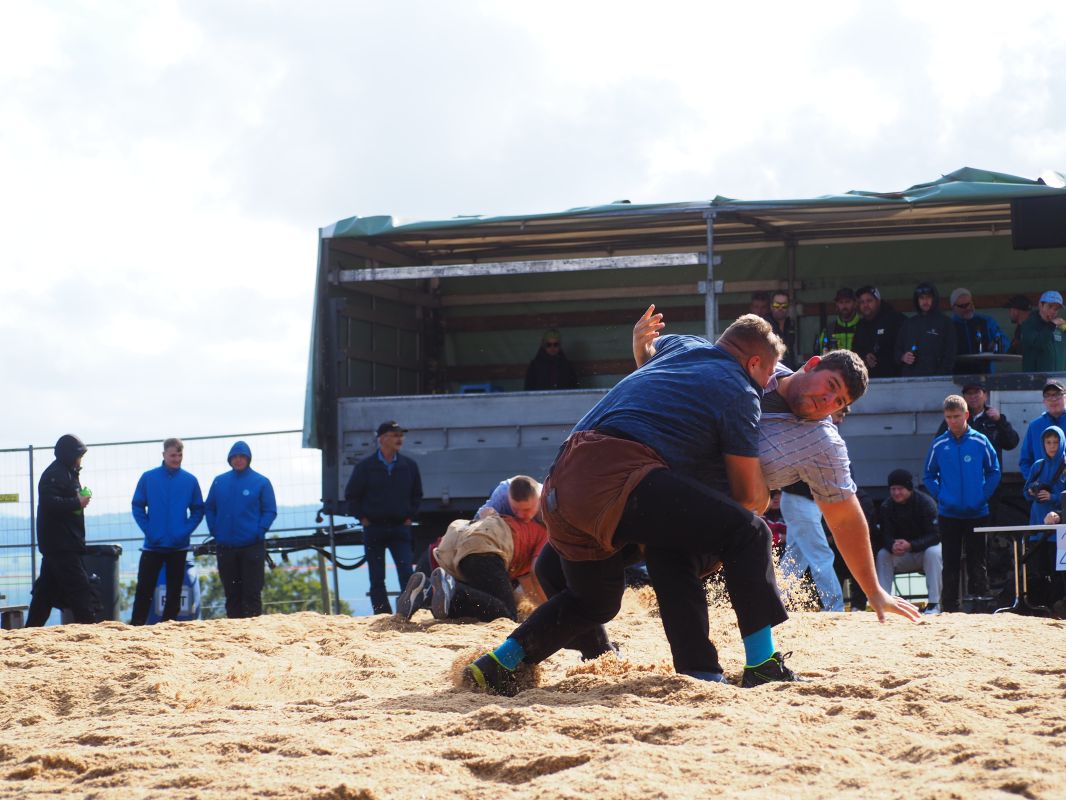Am traditionellen Hombergschwinget des SK Kulm wurden unter den rund 70 Aktivschwingern spannende Zweikämpfe ausgetragen. Mit den Gästen aus dem ISV Verband wurde um jeden Viertelpunkt gekämpft. Den rund 1’100 Zuschauern wurde beste Schwingerarbeit gezeigt. Das letzte Rangschwinget der Saison im Kanton konnte ohne verletzte oder verunfallte Sportler ausgetragen werden. Im Schlussgang durften sich Alpiger Nick und Bier Marcel, wie schon im Anschwingen, die Hand reichen. Im 1. Gang endete diese Begegnung mit einem Gestellten. Den Schlussgang konnte Alpiger Nick nach 4.39 Min. mit Fussstsich und Nachdrücken für sich entscheiden.