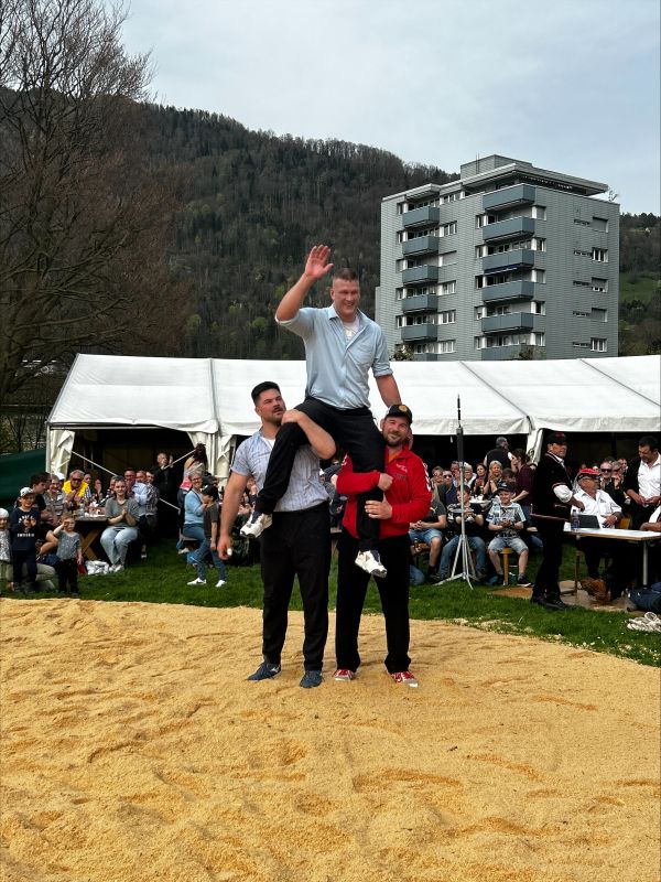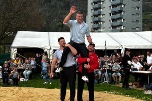 Beim zweiten Anlauf konnte das Frühjahrsschwinget in Oberarth mit stolzen 91 Schwingern durchgeführt werden. 600 Besucherinnen und Besucher wollten wieder Sägemehl-Luft schnuppern und spannende Zweikämpfe bewundern. Dies wurde ihnen regelrecht geboten. Die beiden Hauptfavoriten, Pirmin Reichmuth und Mike Müllestein, lieferten sich von Beginn an ein hartes Kopf-an-Kopf-Rennen um den Tagessieg.
