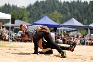 Lars Reist und Joshua Franz, beide vom Schwingklub Sumiswald, boten den Zuschauer interessante und intensive Bodenarbeit. Schlussendlich gewinnt Lars Reist nach 7 Minuten 34.
