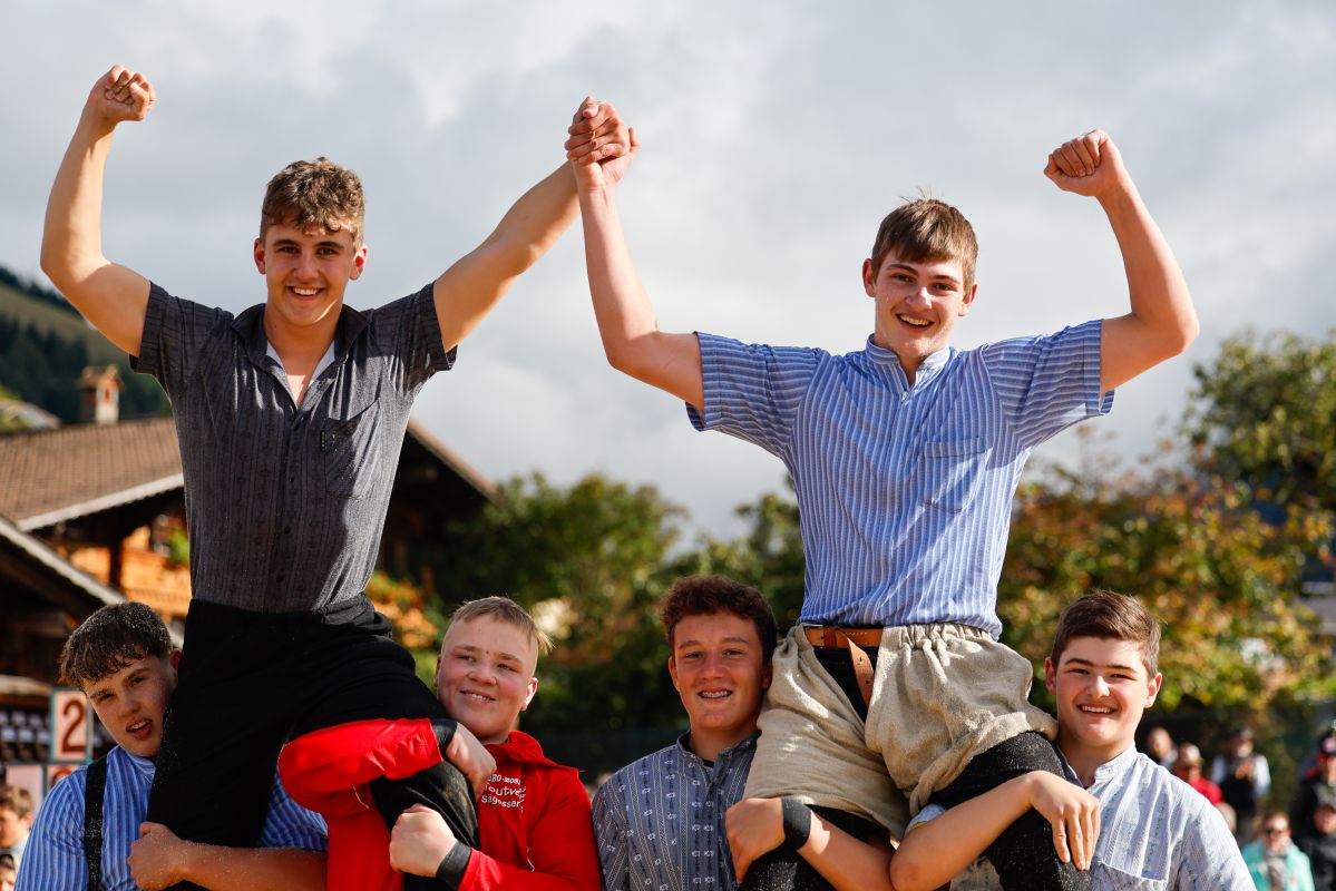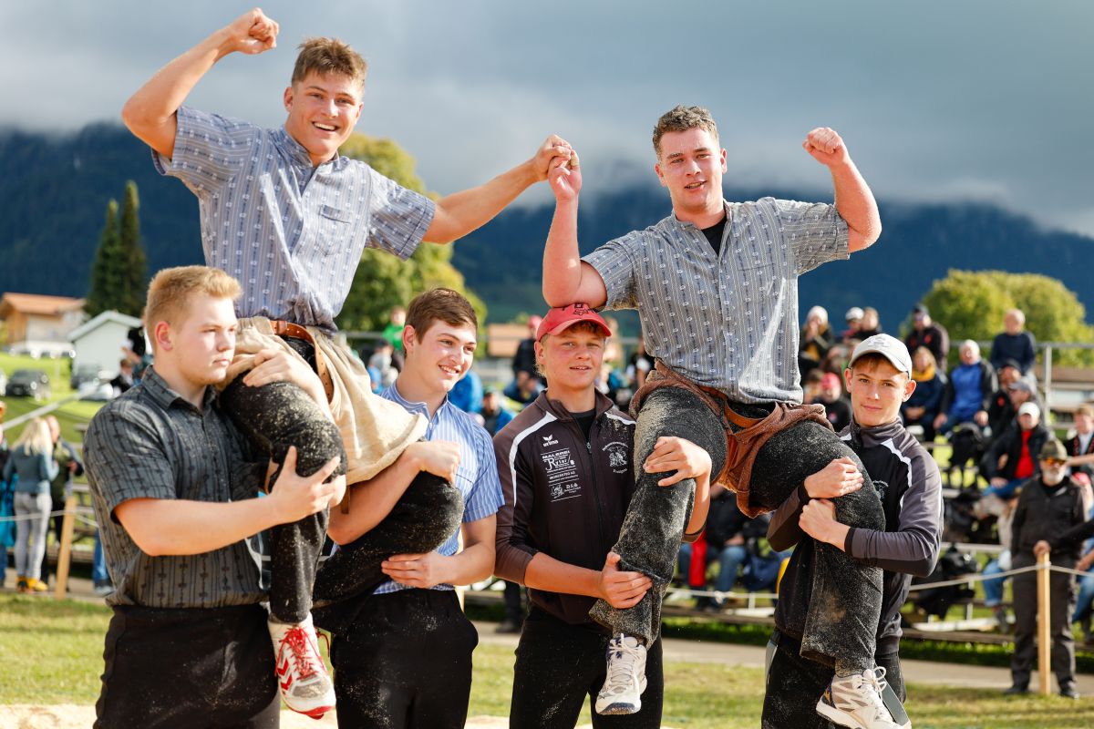 • 27. September 2025, Bernisch-Kantonaler Nachwuchsschwingertag Aeschiried,Kategoriensieger,Jg.2010, Gerber Jason (l.) - Burkhalter Silvan (r.)