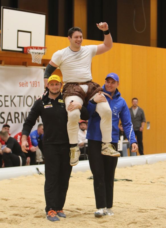 Marcel Bieri, bestritt bereits 2024 den Schlussgang. Da dieser gestellt wurde, erbten damals Pirmin Reichmuth und Mike Müllestein den Sieg. Dieses Jahr liess Bieri nichts anbrennen. Jonas Burch musste sich bereits nach weniger als einer Minute das Sägemehl vom Rücken wischen lassen. Marcel Bieri gewann den 49. Grossen Hallenschwinget Sarnen vor seinem Klubkollegen Noe van Messel. Neben den beiden Ägeritalern dufte sich der Ennetmooser Ivan Felder über den Gewinn eines Lebendpreises freuen.