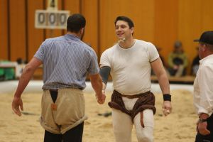 Erfreulicherweise konnten auch die Schwinger des Ob- und Nidwaldner Kant. Schwingerverbandes einige Ausrufezeichen setzen. Nach vier Gängen setzte sich der Sachsler Ueli Rohrer zusammen mit Sven Lang mit 38,75 Punkten an die Ranglistenspitze. Beide konnten ihre 5. Gänge nicht siegreich gestalten und fielen in der Rangliste zurück. Die Spitze bildeten nun die beiden Ägeritaler Marcel Bieri und Noe van Messel gemeinsam mit Jonas Burch. Als alleiniger Erstplatzierter nach fünf Gängen war Bieri für den Schlussgang gesetzt. Bei der Entscheidung über den zweiten Schlussgangteilnehmer gab die Einteilung Jonas Burch von der durchführenden Schwingersektion Sarnen den Vorzug gegenüber dem gleichplatzierten Noe van Messel.