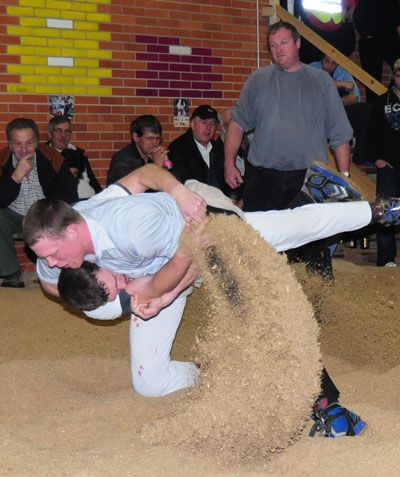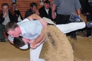 Matthias Sempach, Alchenstorf bezwingt seinen Bruder Stefan Sempach, Alchenstorf mit einem Brienzer und anschliessendem Überdrücken am Boden. Matthias gewinnt das 39. Hallenschwinget in Kirchberg mit sechs Plattwürfen und erreicht somit das Punktemaximum von 60.00 Punkten. Auch der interessante Vergleich mit dem jungen Berner Oberländer Kilian Wenger kann Matthias klar für sich entscheiden. Stefan Sempach fällt durch die Niederlage im Schlussgang auf den dritten Schlussrang zurück und wird nach den abschliessenden Siegen noch von Roger Brügger und Kilian Wenger überflügelt.