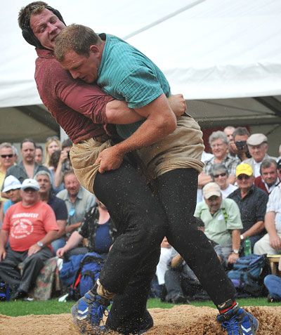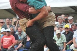 Bruno Gisler, Rumisberg SO, und Christoph Bieri, Untersiggenthal sind gemeinsame Sieger des 90. Baselstädtischen Schwingertages. Nach 12 Minuten trennen sie sich resultatlos im abwechslungsreichen Schlussgang.