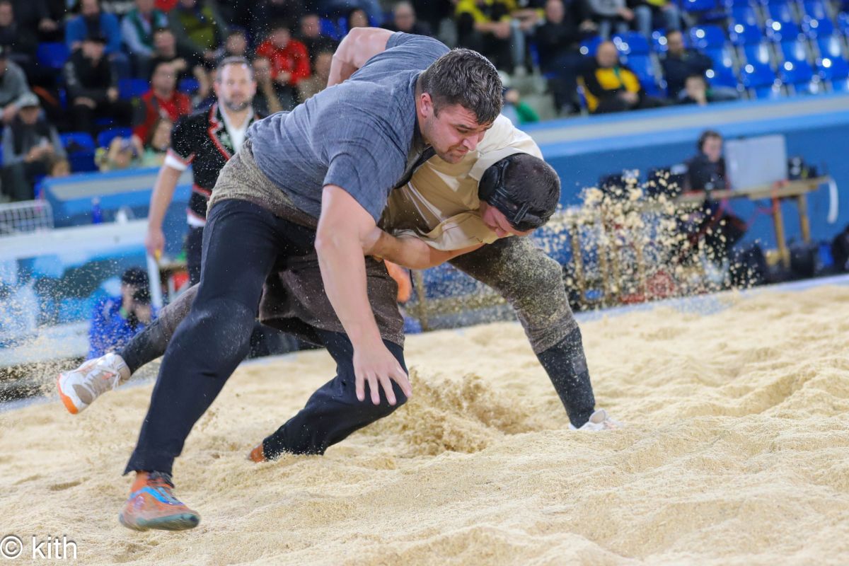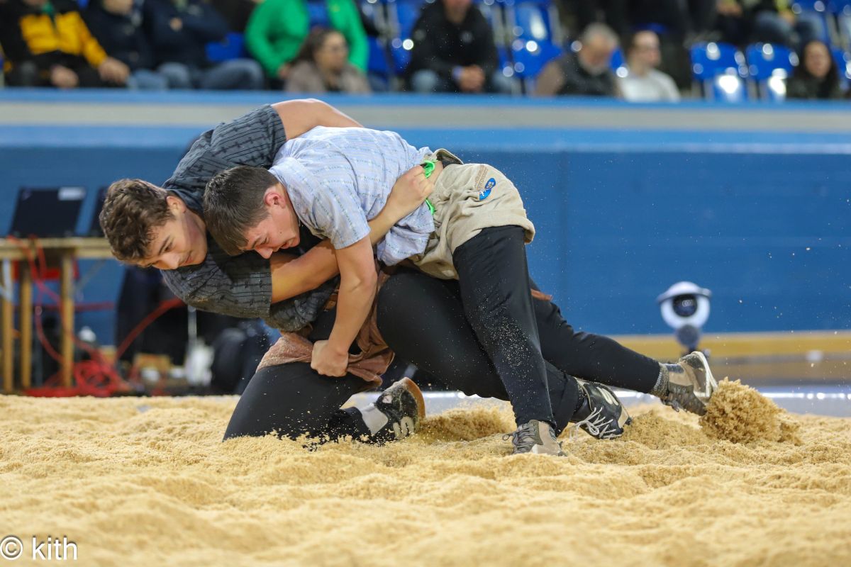 Der Schlussgang zwischen den beiden Eidgenossen Marcel Räbsamen und Nick Alpiger endet nach 10 Minuten gestellt. Dennoch darf sich Marcel Räbsamen als Sieger des 128. Berchtold Schwingets feiern lassen. Der Schwingklub Zürich bedankt sich bei 1300 Zuschauern.