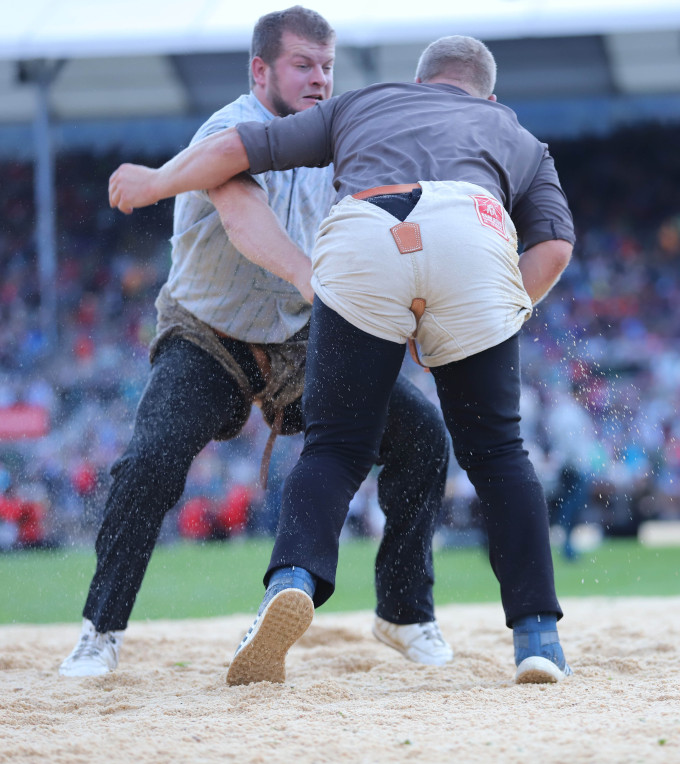 adm. Vor 1200 Zuschauern bestritten 65 Schwinger, davon zwei Eidgenossen und zehn Teilverbandskranzer, die Wettkämpfe am Eschenbergschwinget. Für den Schlussgang qualifizierten sich Samir Leuppi... mehrPhilipp Lehmann beim Gibelschwinget im Schlussgang