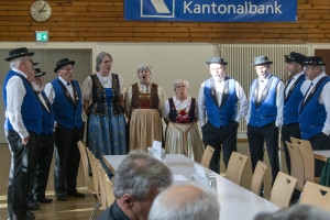 Da die Obmannschaft, bestehend aus Obmann Werner Imlig, Säckelmeister Godi Suter und Schryber Roger Beuchat, für eine dreijährige Amtsperiode bis 2027 gewählt ist und es keine ausserordentlichen Rücktritte gab, konnte zügig zu den Ehrungen der anwesenden über 80-jährigen Veteranen übergegangen werden. Insgesamt 16 über 80-jährige Veteranen wurden mit einem feinen Tropfen geehrt. Unter anderen auch die Ältesten mit Jahrgang 1940, Hans Thierstein und Walter Burgdorfer. Nach dem offiziellen Teil wurde ein feines Essen serviert und beim gemütlichen Zusammensein pflegten die Veteranen die vielzitierte Schwingerkameradschaft.